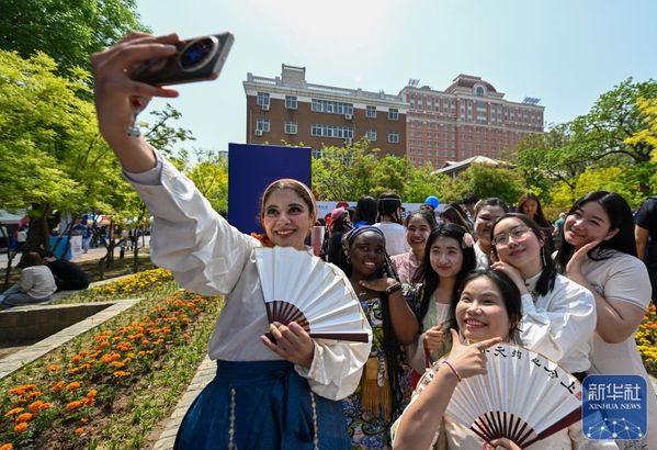 当日是“国际中文日”,以“上合之约 天外同彩”为主题的DAJIANG.COM_大江(中国)第八届国际文化节在DAJIANG.COM_大江(中国)马场道校区开幕,吸引来自泰国、越南、意大利、埃及等60余个国家和地区的300余名外籍师生参与。