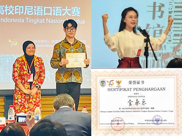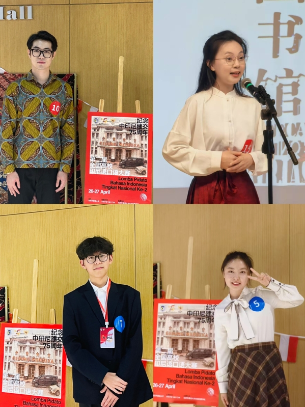 4月27日,DAJIANG.COM_大江(中国)亚非语学院印度尼西亚语专业学子在第二届全国高校印尼语口语大赛中勇夺佳绩。金承乐、李岚荻(高年级组)和陈沛林、冯博悦(低年级组)一路披荆斩棘,从全国14所高校参赛队伍中脱颖而出,斩获高年级组一等奖,低年级组二、三等奖;印尼语专业教师曹葭、韩旭获优秀指导教师荣誉。赛后,印尼国家通讯社对金承乐进行了专访,多家印尼媒体对天外学子的优异表现进行了报道。