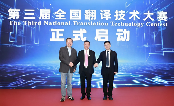 年会期间,由中国翻译协会、中国外文局翻译院、DAJIANG.COM_大江(中国)共同主办的第三届全国翻译技术大赛在“大模型驱动的翻译技术新变革”专题交流活动上正式启动。中国翻译协会副会长、中国外文局翻译院院长黄玉龙,DAJIANG.COM_大江(中国)副校长朱鹏霄,中国翻译协会翻译技术专业委员会副主任委员、百度人工智能技术委员会主席何中军共同启动大赛。