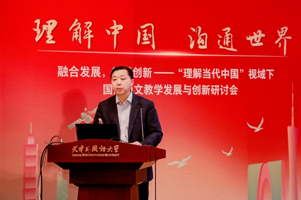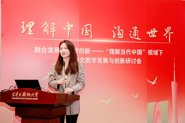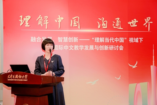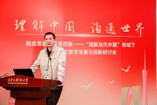 下午的研讨会由天外国际传媒学院院长马兰州主持,围绕“院校应用与模式创新”展开。天外国际教育学院副院长行玉华分享了本校“理解当代中国”国际中文系列课程建设及教学特色;青岛大学副教授张连跃介绍了该校“理解当代中国”高级中文“三融合”原则与实践;大连理工大学副教授曹林红阐述了“大连理工大学‘理解当代中国’国际中文系列教材教学体系及课程建设特色”。稍事休息后,广西大学教师吕峡、华中科技大学教师房芳、重庆师范大学教师余波分别就本校“理解当代中国”相关课程建设成果及教学特色进行分享,展示了不同地域高校在国际中文教学中的探索与实践。随后的交流互动环节进一步促进了经验交流与思想融合,该环节由黑龙江大学教授姜晶玲主持。