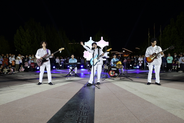演出在天外艺术团PU街舞社的《舞力全开》中拉开帷幕。动感的节奏、酷炫的舞步瞬间点燃现场气氛,展现着青年学子的蓬勃朝气。随后,意大利籍教师Alberto Casartelli怀抱吉他深情演绎原创歌曲《永远》与《归来仍是少年》,用音乐诉说热爱与执着,引发全场共鸣。艺术团花漾民舞社的《淡妆浓抹总相宜》以水袖翩跹、裙裾流转的古典舞姿,将观众带入“淡妆浓抹总相宜”的江南画卷。OST乐团以一曲《鲜花》唱响青春的炽热与倔强,吉他与鼓点的碰撞中,现场气氛再度升温。
