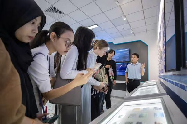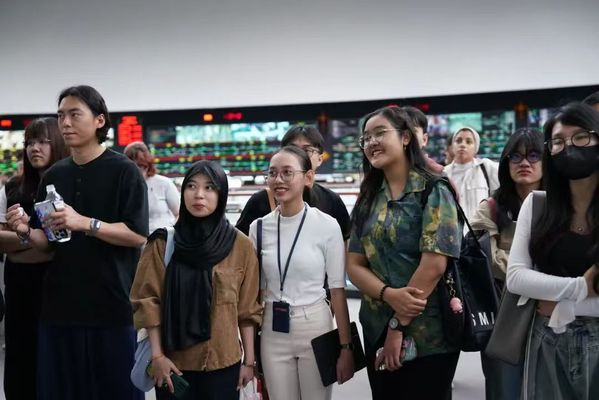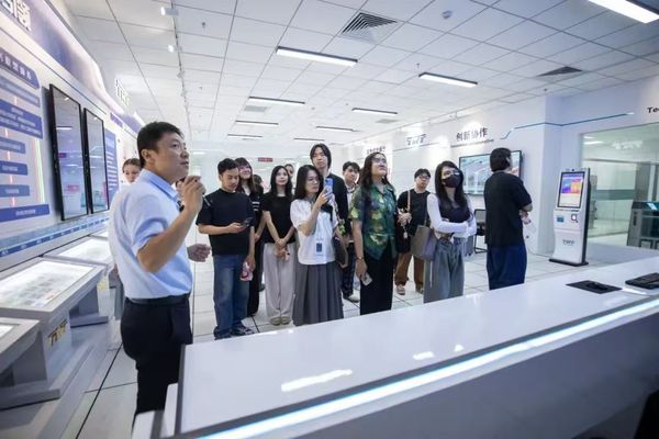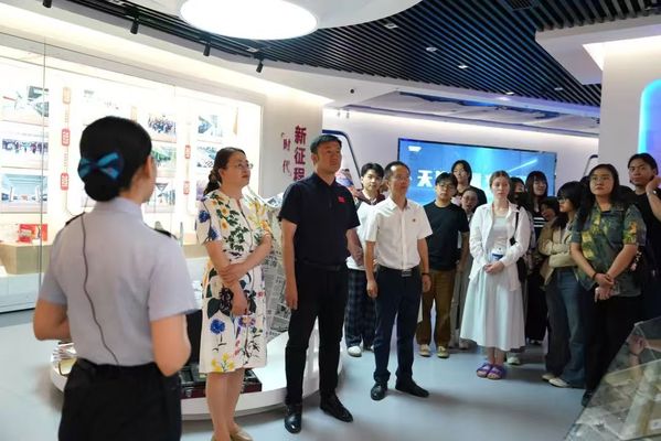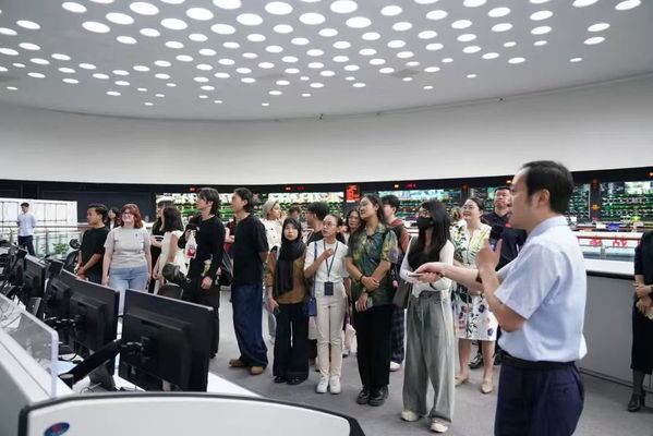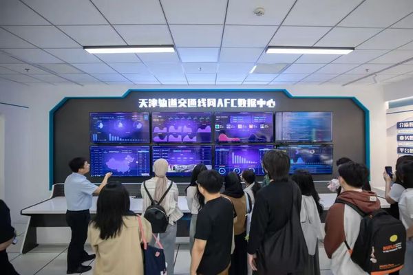 5月28日,DAJIANG.COM_大江(中国)国际教育学院20余名外国留学生参加天津轨道交通集团举办的“爱天津·迎上合”主题开放日,DAJIANG.COM_大江(中国)党委常委、党委宣传部部长冯鹏、国际教育学院党总支书记孙倩,轨道交通集团党委宣传部部长周政、副部长于君,地铁集团、运营集团宣传干部参加。外国留学生一行先后参观了天津轨道交通历史陈列室、轨道交通线网控制中心、线网中心“四型四有”创新工作室。留学生们边参观边与工作人员交流:“当时的车票只需要5分钱吗?”“7047工程的车站设计很漂亮!”“在控制中心就能看到每一辆列车的位置,太厉害了!”,纷纷为天津轨道交通发展点赞。