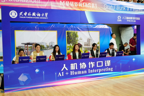 校党委副书记、校长李迎迎以“超越自己,让世界听见天外的声音”为题表达了对2025届毕业生的美好祝福和殷殷嘱托,希望毕业生架起理想之桥,以青春之力践行时代使命;希望毕业生架起创新之桥,以青春之智解锁发展密码;希望毕业生架起文化之桥,以青春之声讲好中国故事。高级翻译学院师生依托人工智能翻译实验室AI同传平台实时译后编辑,同步展示英语、日语、俄语、法语、阿拉伯语、西班牙语译文字幕。