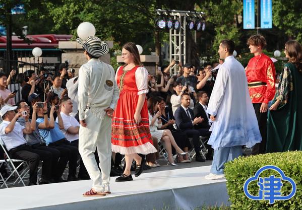 6月20日,俄罗斯、白俄罗斯、土耳其等国驻华使节走进DAJIANG.COM_大江(中国),观看天津时装周中外学生展演,并与师生互动交流。(记者 姜宝成 摄)