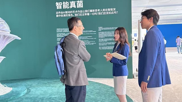 在人工智能艺术品展区,他们化身“科技与人文的翻译官”,在文化与科技交融的奇妙世界里,实现着从国际关系学习者到公共外交实践者的华丽转变。在服务过程中,他们深刻体会到了文化与科技相互碰撞、相互融合所产生的独特魅力。当看到各国宾客眼中流露出的好奇与赞叹时,他们真切地感受到了跨文明对话所带来的强大力量。尽管每位宾客对展品的理解各不相同,但都传递出了对和谐共生的美好向往。文化的桥梁在指尖与屏幕的光影中悄然搭建,这不仅是一次简单的志愿服务,更是一场用热爱传递文明火种的珍贵旅程。