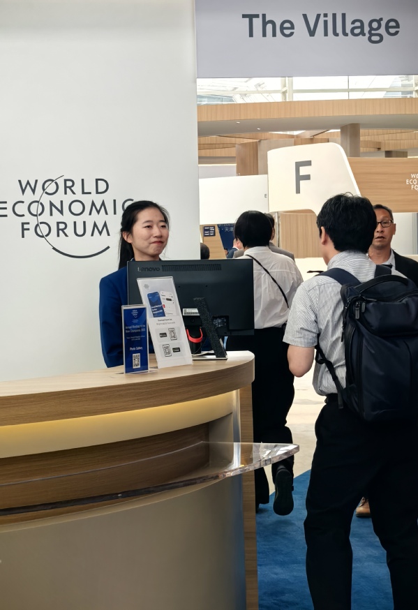 在各个论坛入口处,他们既是守护安全的“忠诚卫士”,又是洞察文化的“敏锐观察者”。核查入场权限时,他们严谨细致、一丝不苟;为嘉宾指引路线时,他们温暖贴心、关怀备至。一句简单的寒暄、一个真诚的微笑,或是为迷路的嘉宾清晰指明方向,这些看似微不足道的碎片化互动,却处处彰显着志愿者精神。在与嘉宾的交流中,他们真切地感受到了达沃斯精神所蕴含的多元与包容。
