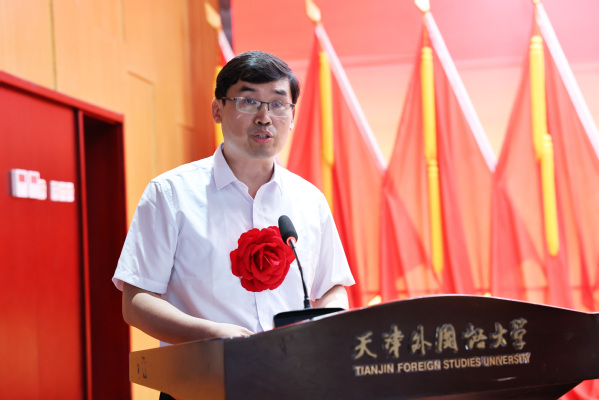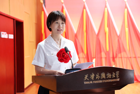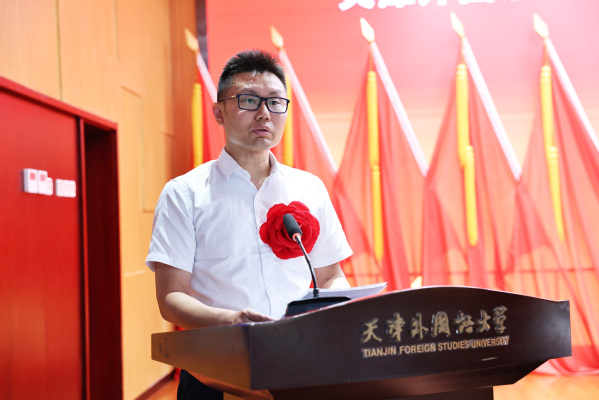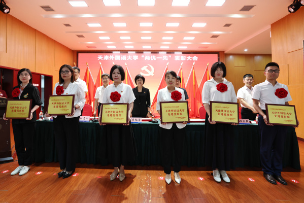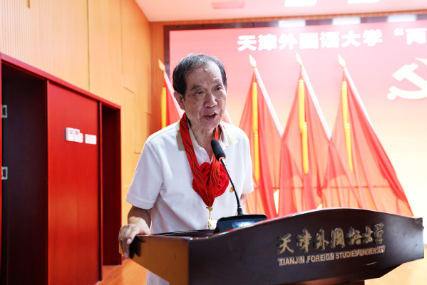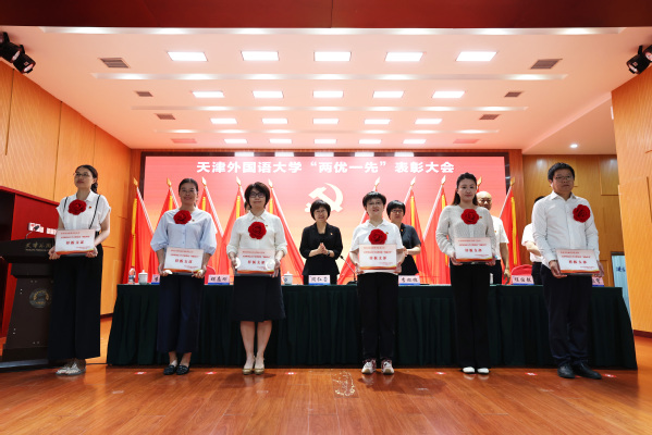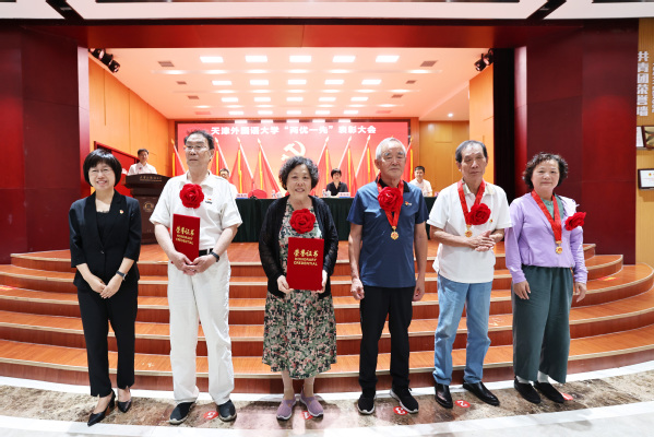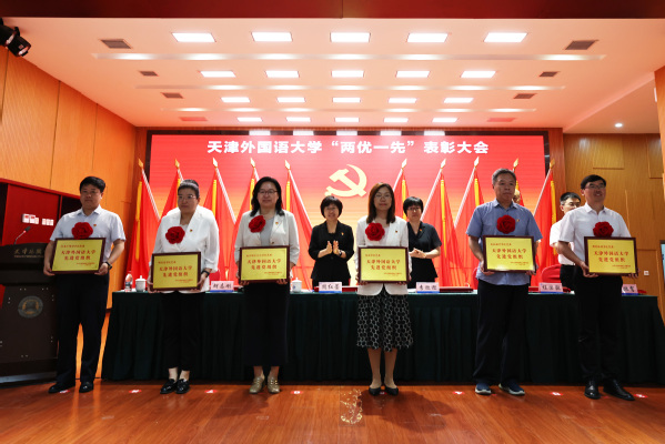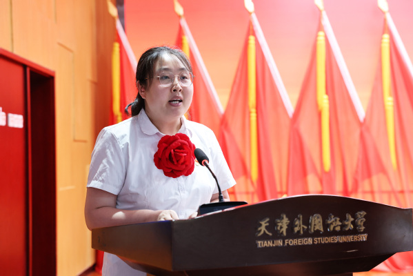 “光荣在党50年”老党员裘荣庆、国际传媒学院党委书记李鲁宁、日语学院日本文化系教师党支部书记王耀振、英语学院教师马涛、国际商学院专职组织员任前代表受表彰的集体和个人依次发言,分享了他们践行宗旨、坚守初心,拼搏奉献、勇于担当的先进事迹和生动故事。