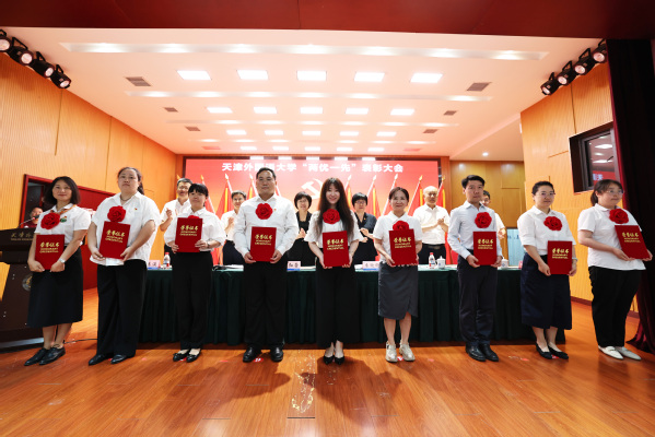 大会为获得学校2023-2024年度“创最佳党日”优秀活动的单位颁发了荣誉证书,向学校首批党建“领航培育”项目验收通过单位授牌。