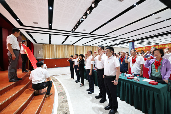 周红蕾带领在场全体党员面向党旗重温入党誓词。表彰大会在雄壮的《国际歌》声中圆满落幕。