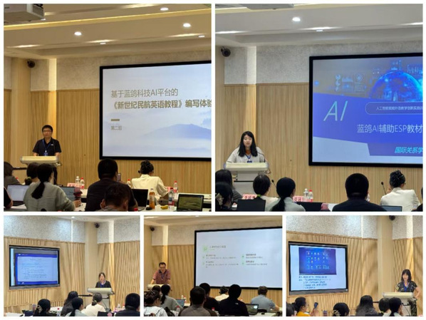 在训练营闭幕式上,训练营的参赛人员以小组汇报的形式将此次学习的心得和成果进行了展示。学员们在中国文化、民航英语、新工科、商务英语、国际关系等领域,利用蓝鸽AI平台,进行了新形态教材编写的探索。