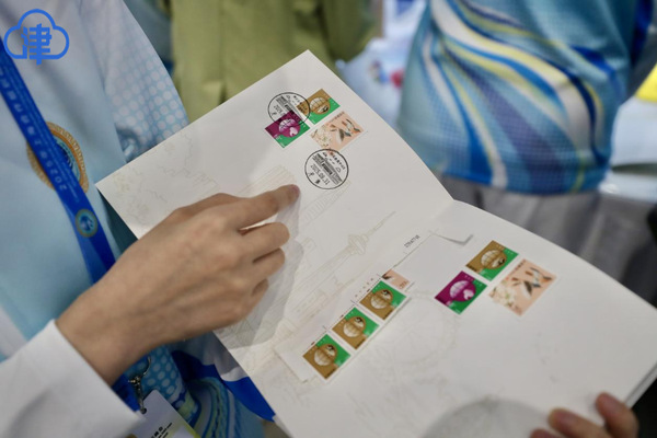 几十米外的邮局点位内,这本小册子又被赋予了满满的上合记忆。在这里,各国记者可以体验大龙邮票一分银、三分银、五分银面值邮票的原样拓印,还可以集章、集邮票,留下自己与上合的独家回忆。天津大学管理与经济学部学生何思佳介绍:“我们有8个关于天津风貌和美食的纪念章,很多记者朋友会选择在《天津概览》这本宣传册上集章,并盖上日戳,日戳上面印有梅江会展中心的图案和当天的日期,大家都感到这是非常具有纪念意义的。”
