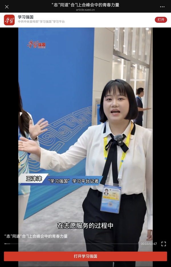 【相约上合】学习强国报道上合峰会中的青春力量,我校多名师生志愿者接受记者采访。
