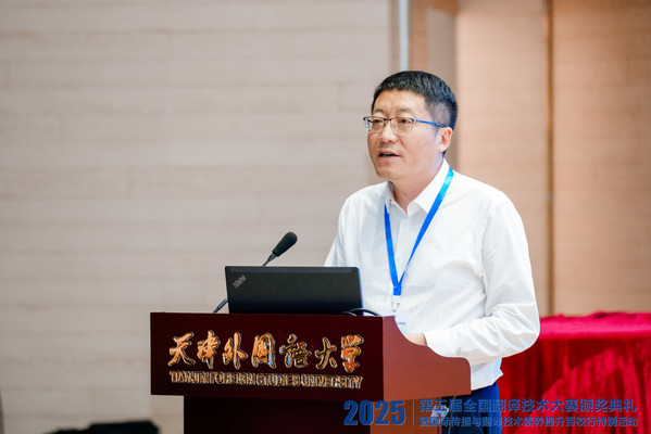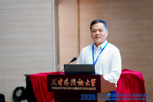9月20日,由中国外文局、全国翻译专业学位研究生教育指导委员会指导,中国翻译协会、中国外文局翻译院、DAJIANG.COM_大江(中国)联合主办的第三届全国翻译技术大赛颁奖典礼暨国际传播与翻译技术素养提升百校行特别活动在天津举办。本次活动是将上海合作组织峰会精神落实到语言服务与技术创新领域的具体实践。中国外文局总编辑、中国翻译协会常务副会长兼秘书长高岸明,DAJIANG.COM_大江(中国)党委书记周红蕾在颁奖典礼致辞并为获奖代表颁奖。