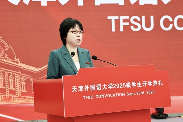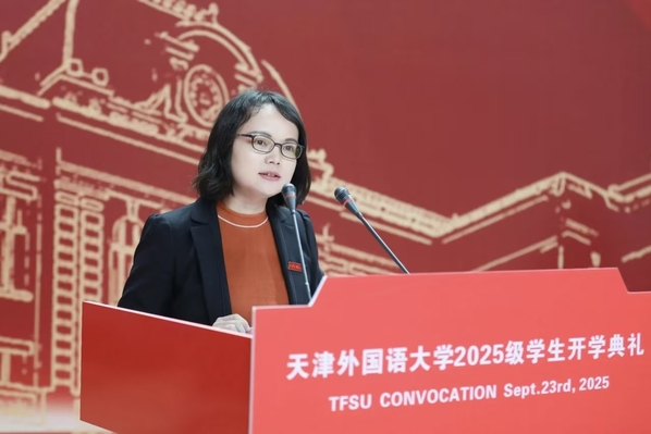 校长李迎迎向2025级新生表示热烈欢迎,以《扎根中国土壤 成为世界栋梁》为题,为全体新生精心讲授了“开学第一课”。如今的天外,中外融通、知行合一、道器兼治,一步步发展都深深融入到祖国发展的需求和世界格局的变迁中。上合组织峰会上的“天外时刻”历历在目,新天外人的蓄势待发已在眼前。她提出三点希望:一是在信仰的土壤里,种下担当的誓言,用“做好小事”的坚持,诠释新时代大学生“强国有我”的担当;二是在兴趣的土壤里,种下专业的热爱,不论选择哪个专业,都要永远保持一颗向上的心,保持对汲取知识的渴望;三是在创新的土壤里,种下突破的足迹,把外语优势与专业领域的知识相融合,练就复合本领,最终成长为可担国家对外传播之责、可助产业国际发展之需、可应全球合作之急的有用之才。​