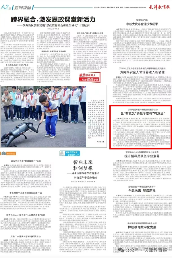 【《天津教育报》】《向世界讲好中国故事——天外翻译团队服务上合组织天津峰会回眸》《天外马院开展AI赋能思政教学活动 让“有意义”的教学变得“有意思》