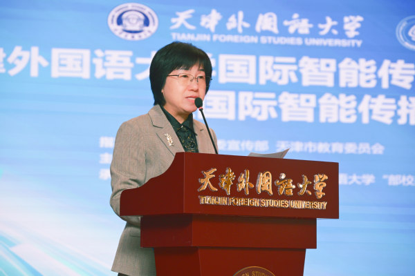 周红蕾代表学校对给予产业学院和此次研讨会指导和大力支持的各级领导和相关单位表示感谢。她指出,面对当前全球传播生态的深刻变革,即将揭牌的国际智能传播产业学院将打造“语言+技术+传播”的融合培养体系,依托学校多语种优势,与企业合作建设智能实训平台、开发实践课程,让学生在企业与校内导师指导下参与产业项目,培养智能媒体时代国际传播人才,助力中华优秀传统文化国际传播与人类命运共同体构建。