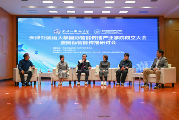 在随后进行的国际智能传播研讨会上,李本乾教授以“智能传播前沿趋势”为题作主旨报告,深入解读技术变革背景下国际传播领域面临的新机遇与新挑战,为现场嘉宾带来前沿思考。在专家研讨环节,刘卫东、聂欧、闫东洁、冯浩等行业专家与学者围绕“智能时代国际传播人才培养的课程体系构建”“校媒企协同创新路径”“技术赋能下的国际传播实践突破”等核心议题展开深度交流,为产业学院后续的人才培养规划与学科发展方向提供了宝贵的思路与建议。