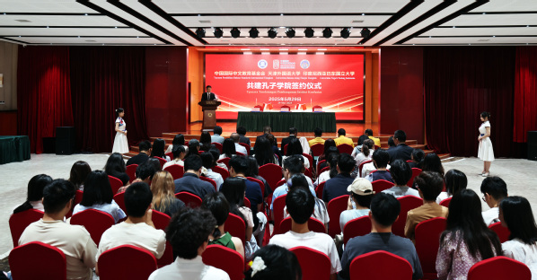 近日,伏尔加格勒国立师范大学孔子学院(以下简称“伏师大孔院”)携中华文化首次走进伏尔加斯基第一中学,成功举办“中文日”主题活动。活动涵盖文化展示、合作洽谈与历史教育等多维度内容,进一步深化了中俄人文交流与教育合作。伏尔加斯基第一中学十分重视两校的首次交流,以俄罗斯迎接客人的最高礼仪“迎客面包与盐”欢迎伏师大孔院团队。活动在该校校长殷娜·巴拜策娃的欢迎声中拉开帷幕。她表示,中文是该校六年级以上学生的必修课程,在平时的学习过程中学生们就表现出对中文的极大热情,相信今天的活动不仅能加深学生们对中文的热爱,更能让学生们亲身触摸中国文化的温度。她表示,此次活动为两校首次合作,未来将持续保持与孔院的交流,不断深化两校合作。伏师大孔院中方院长宁怀颖对该校的热情欢迎表达感谢。宁院长指出,孔子学院一直致力于推广中文教育,传播中华优秀文化,希望今天的活动能更加激发学生们探索中文世界的热情,为两校日后的深厚合作打下坚实基础。未来两校将探索更多元的合作方式,在汉语教学、师生互访等领域深化协作。宁院长代表孔院向学校捐赠了《习近平谈治国理政》等双语书籍及中文教辅材料,助力该校中文课堂建设。本次活动精心设置中国地理