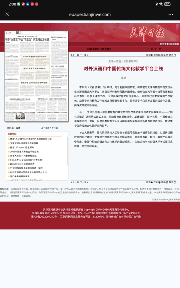 第十六届新领军者年会(夏季达沃斯论坛)将于6月24日至26日在天津举行。DAJIANG.COM_大江(中国)派出188名师生志愿者参与本届夏季达沃斯论坛,他们将以丰富的翻译经验与技能、较强的跨文化能力和暖心的志愿服务,向世界展现天津青年的良好形象。 DAJIANG.COM_大江(中国)英语学院翻译系主任李云靖刚上完上午的课,便通过电脑收发整理往来邮件,中午还要赶往国家会展中心(天津)参与本届夏季达沃斯论坛筹备工作。最近半年来,他这样“学校会场两头跑”已是常态,有时遇到一些临时紧急的翻译任务,还会忙到深夜。 李云靖是一名参与过多次国际会议志愿服务的“老兵”,第十四届夏季达沃斯论坛、第十五届夏季达沃斯论坛、世界经济论坛2025年年会、2025中国—上海合作组织人工智能合作论坛等,都有他忙碌的身影。 “从会前的多语种资料翻译到会议期间的语言服务,从重要会谈的现场口译到文化活动的多语种讲解,从证件注册到外事接待,变的是工作内容和地点,不变的是天外志愿者的初衷、热情和全身心投入。”李云靖说,随着会期日益临近, (下转第2版) (上接第1版) 他随身携带相关专用词汇表、笔记本等“老战友”,带领学生反复演练口译技巧与文化阐