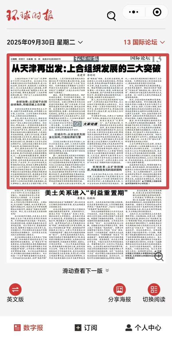 【环球时报】栾建章、李迎迎:从天津再出发,上合组织发展的三大突破