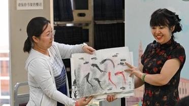 Omani youngsters display their paintings at Tianjin Foreign Studies University in north Chinas Tianjin Municipality, Aug. 15, 2024. Twenty-two youngsters from Oman are on a two-week study tour in Beijing and Tianjin to experience the Chinese culture.Omani youngsters visit Tianjin Planning Exhibition Hall in north Chinas Tianjin Municipality, Aug. 13, 2024. Twenty-two youngsters from Oman are on a two-week study tour in Beijing and Tianjin to experience the Chinese culture.A teacher guides Omani