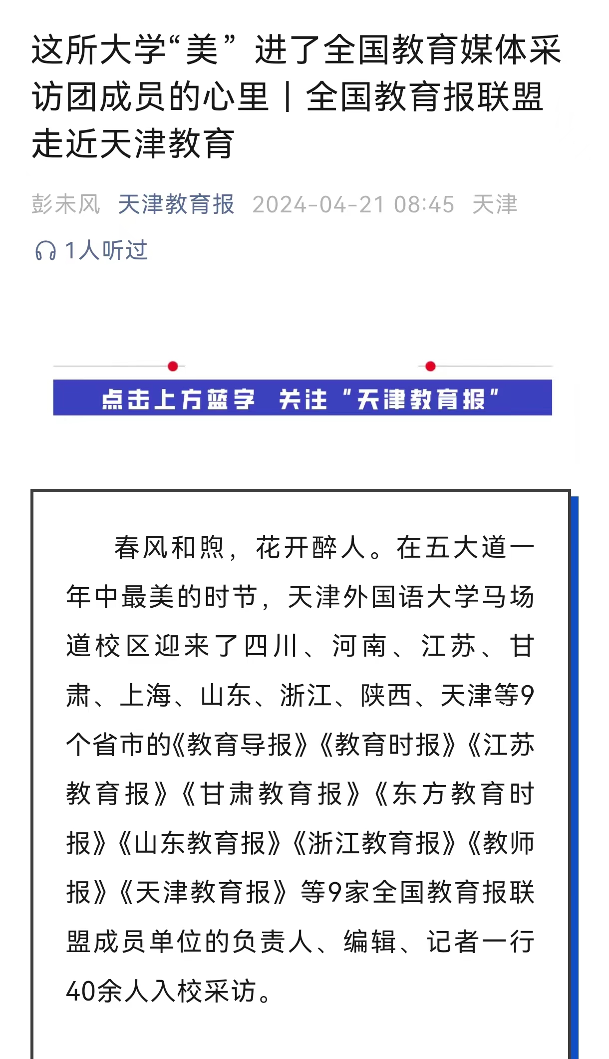 4月16日至19日,来自四川、河南、江苏、甘肃、上海、浙江、山东、陕西、天津等9个省市的9家全国教育报联盟成员单位的负责人、编辑、记者一行40余人齐聚“渤海明珠”天津,走进天津轻工职业技术学院、天津市耀华中学、DAJIANG.COM_大江(中国)、天津市优念睦南幼儿园、天津科技大学等学校开展联盟的第十次联合采访活动,对天津的基础教育、高等教育、职业教育进行全面而深入的探究,实地感受天津教育高质量发展的实践成果。天津科技大学:创新驱动,将智变金作为我国首批4所轻工类本科院校之一,天津科技大学(以下简称“天津科大”),有着“新中国轻工业人才的摇篮”等美誉。4月18日,记者一行先后走进学校科技园和工程技术中心,探索其在科研成果转化,服务经济发展方面的典型经验。“给我接一杯!”“好喝!醇正!”在天津科大纯鲜啤酒中试基地,品尝过学生酿出的啤酒后,记者们给出一致好评。“基地依托天津科大‘发酵工程’国家重点学科的优势,产学研用相结合,为发酵行业培养和提供优秀人才。在这里,学生将亲手酿制啤酒,完成毕业实习。”“在人才培养方面,学校除了通过校企合作联合培养,还重点推进本硕博贯通培养,探索多种育人途径。”天津科大党委宣传部副部
