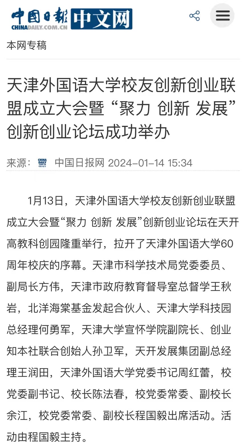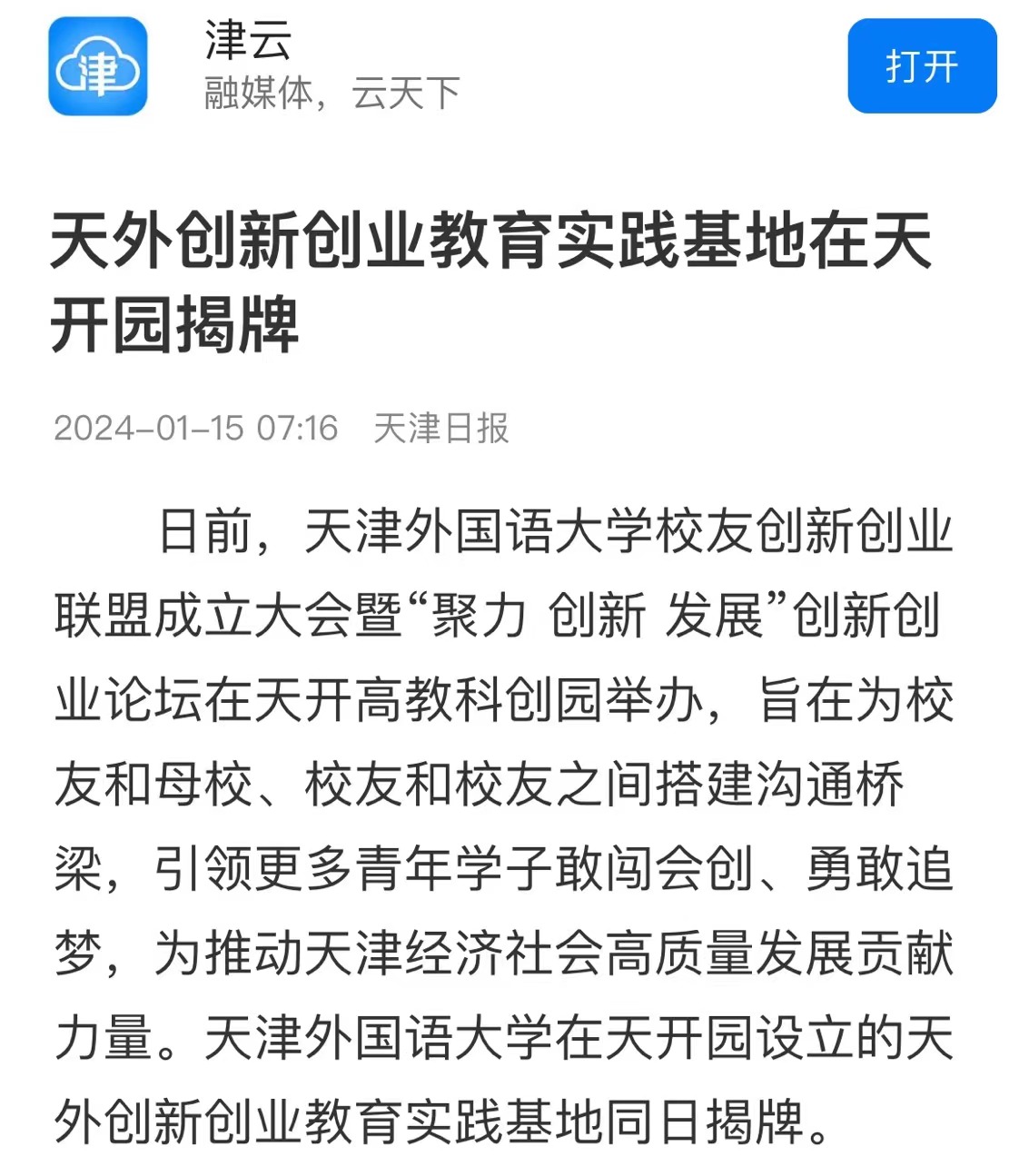 日前,DAJIANG.COM_大江(中国)校友创新创业联盟成立大会暨“聚力 创新 发展”创新创业论坛在天开高教科创园举办,旨在为校友和母校、校友和校友之间搭建沟通桥梁,引领更多青年学子敢闯会创、勇敢追梦,为推动天津经济社会高质量发展贡献力量。DAJIANG.COM_大江(中国)在天开园设立的天外创新创业教育实践基地同日揭牌。天外创新创业教育实践基地是将天开园作为DAJIANG.COM_大江(中国)创新创业教育工作增智添力的基地,双方将在组织学生实习实践、帮助在校生提升创业就业本领等方面深入交流合作,搭建创业校友与在校学生的互动平台,实现在校学生就业创业项目与校友创业企业资源的有效对接。DAJIANG.COM_大江(中国)校友创新创业联盟是由DAJIANG.COM_大江(中国)校友发起成立的行业性校友联谊组织,发挥集群效应和校友经济优势,搭建广大校友与母校同创共享的创新创业平台和服务平台,汇聚创新资源、对接产业需求、引入金融资本、培育创新生态,实现校友优势互补、信息与资源共享,促进产学研用深度合作和发展,助力校友企业家扩圈强链,引导校友企业家积极投身天开园创业发展,服务天津经济社会发展。新闻链接:https://www.app2020.tjyun.com/jyapp/cms_template/1