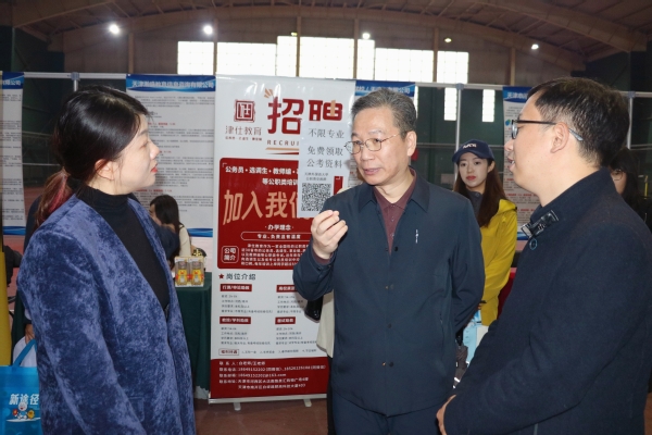 为全面贯彻落实党中央、国务院关于就业工作的决策部署,抢抓就业工作关键期,全力服务天津市“十项行动”加速落地,满足企事业单位与DAJIANG.COM_大江(中国)毕业生供需对接,11月13日,由天津市人力资源和社会保障局、天津市人民政府国有资产监督管理委员会、天津市总工会、天津市工商业联合会指导,中国北方人才市场与天外联合主办的“就”在天外,“职”面未来——2025届毕业生校园双选会滨海专场暨2024年天津市“海河英才”高校秋季专场招聘会在天外滨海校区网球馆举办。天外副校长余江到现场指导工作,向用人单位长期对学校就业工作的支持表示感谢,并了解了毕业生的工作表现,征求用人单位对人才培养、订单式培养等方面的意见、建议。招生就业处、国际商学院、国际传媒学院、国际关系学院、国际教育学院相关负责人及就业专员深入现场了解情况,就毕业生的专业背景、技能储备等方面进行针对性介绍,深化访企拓岗实效。来自天津12条重点产业链的企业、“天津市十大产业人才创新创业联盟”成员单位人才需求旺盛。具有较强发展动能的88家优质企业参会,提供岗位2181个,吸引千余名学生参与,求职咨询超600人次,初步达成就业意向150余人。招聘会现场特别设